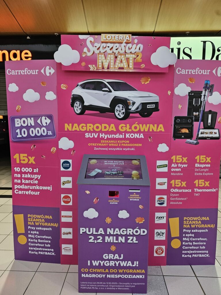 z podwójnego mechanizmu losowań – bezpośrednio w terminalach ustawionych w sklepach Carrefour, dla nagród natychmiastowych oraz poprzez dedykowaną stronę internetową loterii, dla nagród finałowych, tworząc jeszcze bardziej angażujące doświadczenie. SzczęścioMAT ponownie potwierdził swoją skuteczność jako format, który przyciąga uwagę, buduje emocje i zachęca klientów do częstych zakupów.
